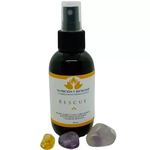 Rescue es una combinación de flores de Bach y aceites esenciales, para situaciones de emergencias, calmar pánico, recuperar el conocimiento, volver de un shock, luego de un trauma complicado, cuadros de angustia y ansiedad extrema.