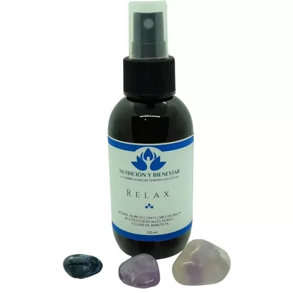 Splash áurico de 125 cc a base de aceites esenciales 100% puros , flores de bach .y agua de gemas.